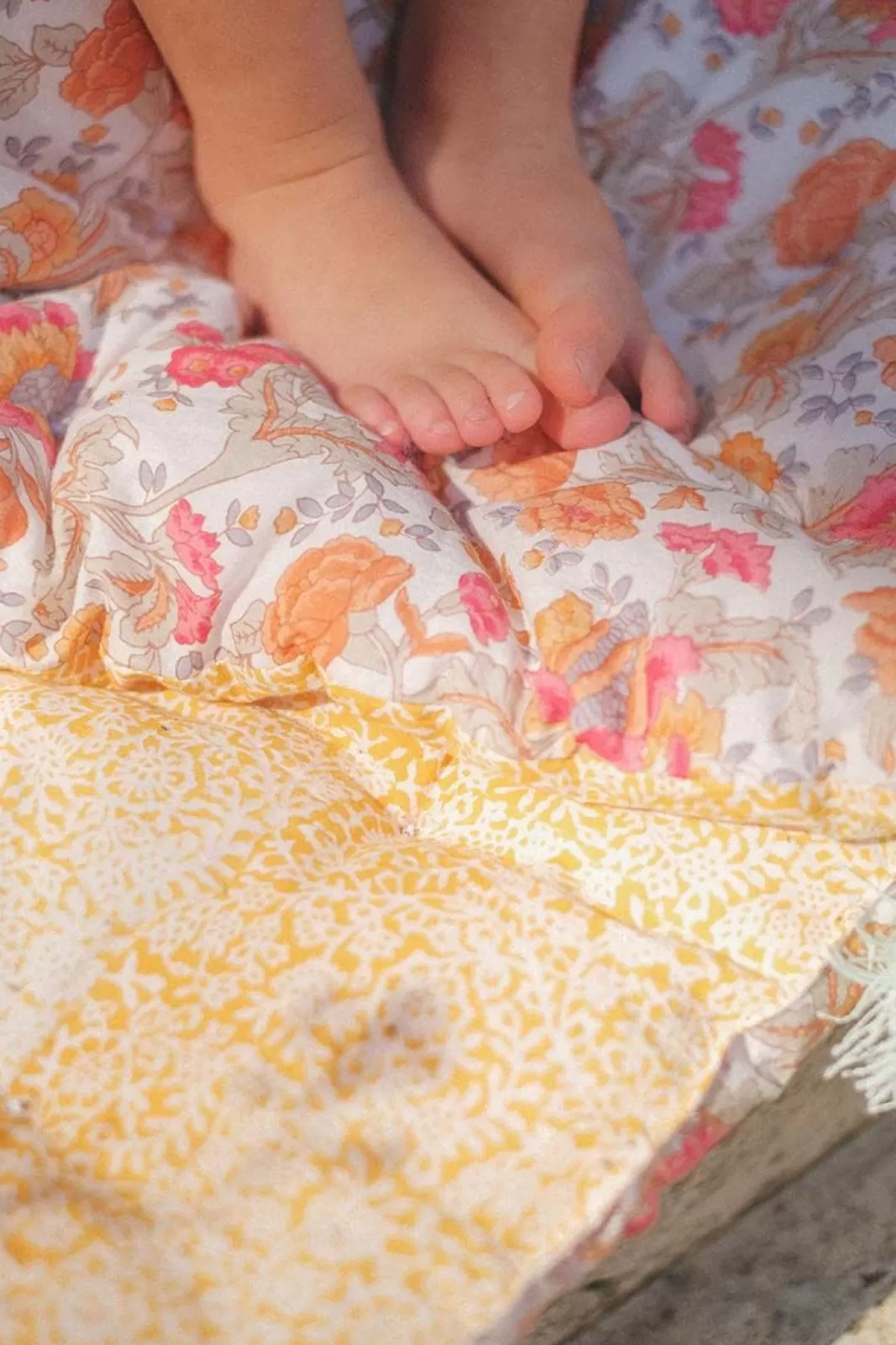 La pièce parfaite pour bouquiner à l’ombre des glycines et écouter les cigales chanter. Avec son épaisseur et son travail matelassé, c’est un matelas de sol de confort en toutes circonstances.