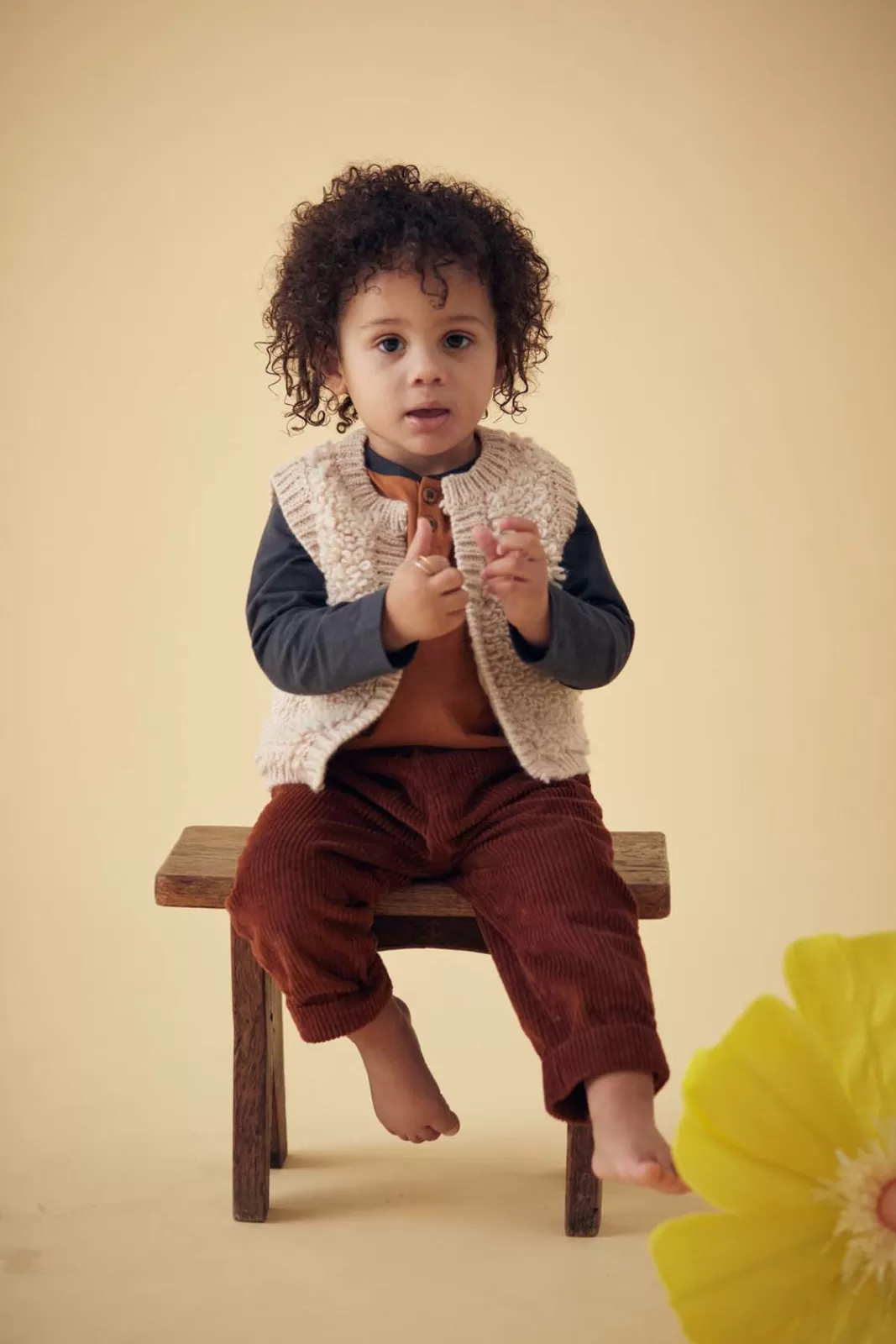 Le gilet Heddi répond à notre quête bohème de confort, douceur & esthétique à la fois.Sans manches, en point bouclette pour un effet mouton totalement cocooning, c’est la pièce idéale pour réchauffer une tenue lorsque les températures sont hésitantes.