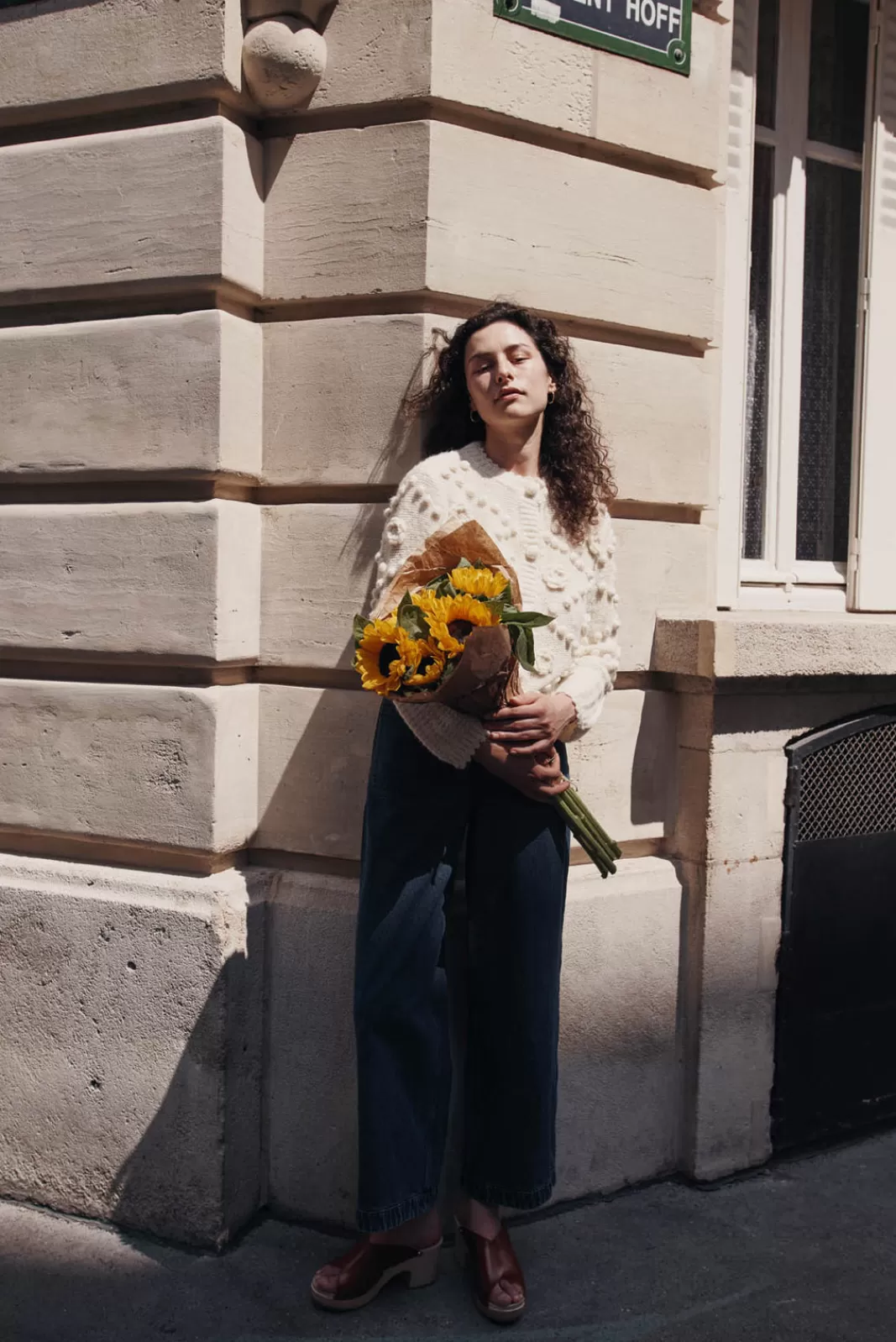 Ce cardigan à la coupe impeccable met à l’honneur le travail artisanal de nos ateliers avec ses fleurs crochetées et ses pompons appliquées manuellement. C’est le genre de pièce d’apparence simple qui permet tout de même d’avoir un style affirmé.