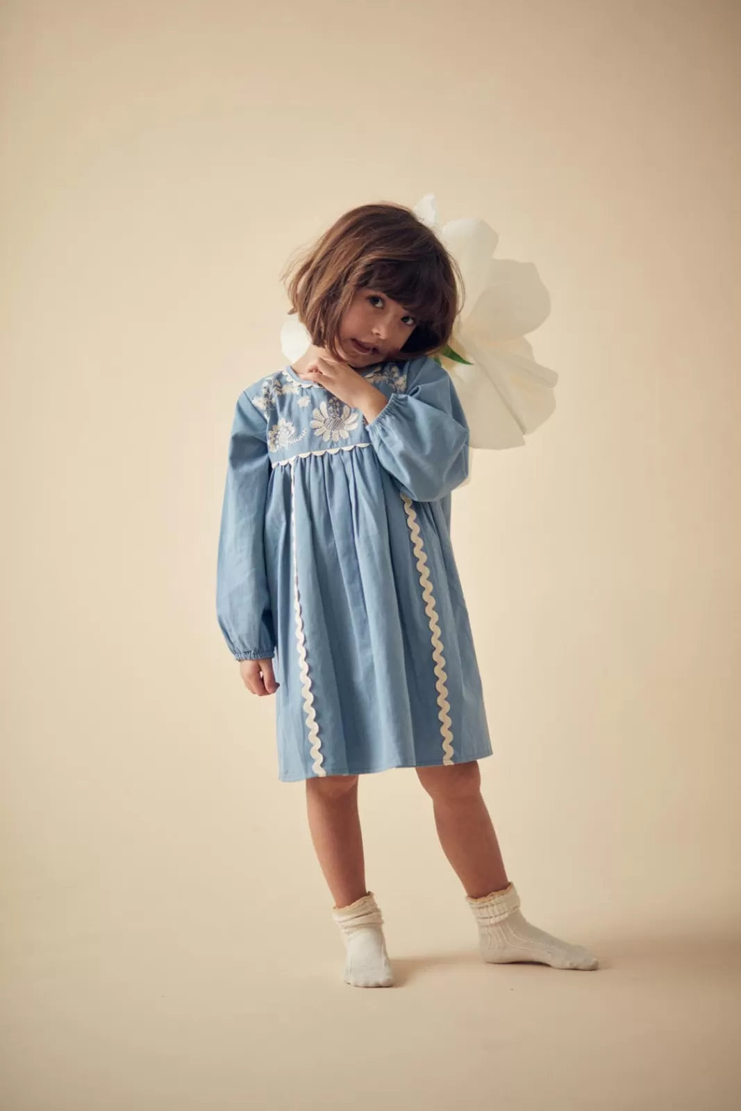 La petite robe effet denim version Louise Misha ! Ses broderies fleuries et ses détails de croquet font toute la différence : une robe à la fois essentielle et singulière, qui plaira à toutes les petites filles, à porter inlassablement.