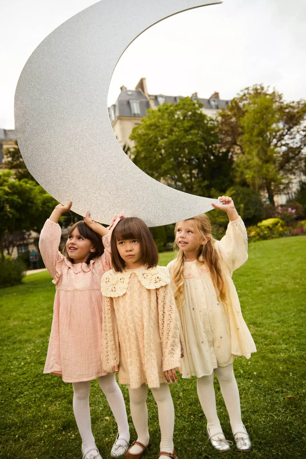 Impossible de passer à côté de cette pièce crème ornée de strass et sequins : si la fête était une robe, ce serait certainement celle-ci ! Une robe qui invite sur les pas de Rimbaud, à tendre « des chaînes d’or d’étoile à étoile » et à danser. Retrouvez le top assorti au sein du vestiaire femme !