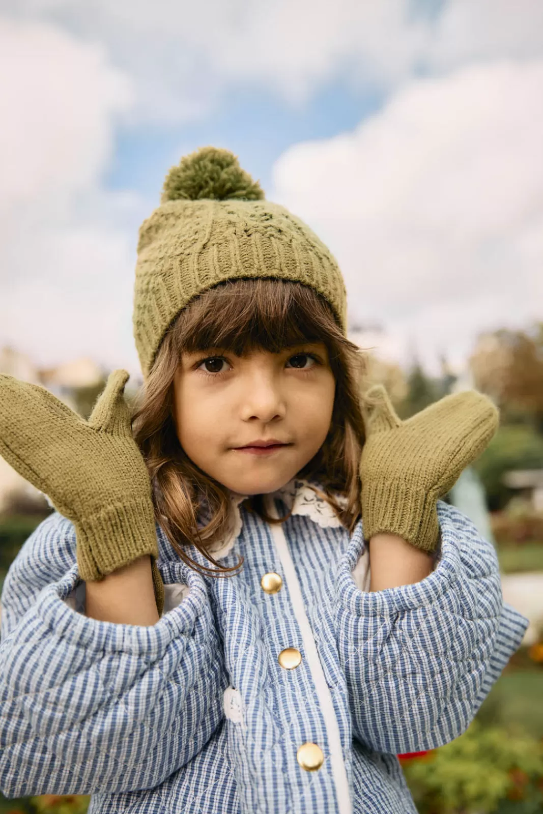 - Moufles tricotées avec détails de torsades et jeux de points fantaisie.